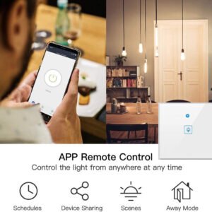2 Gang WIFI Wall Switch, Smart Light Double Switch, Glass Panel Contact Sensor Interrupter EU Plug