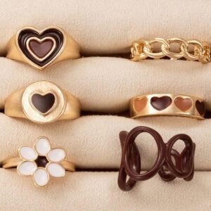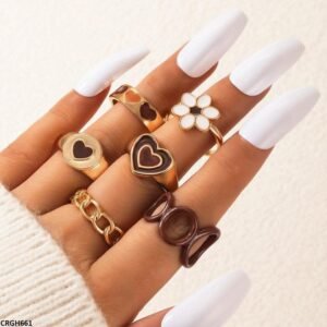 Imported Flower Heart 6 Midi Rings