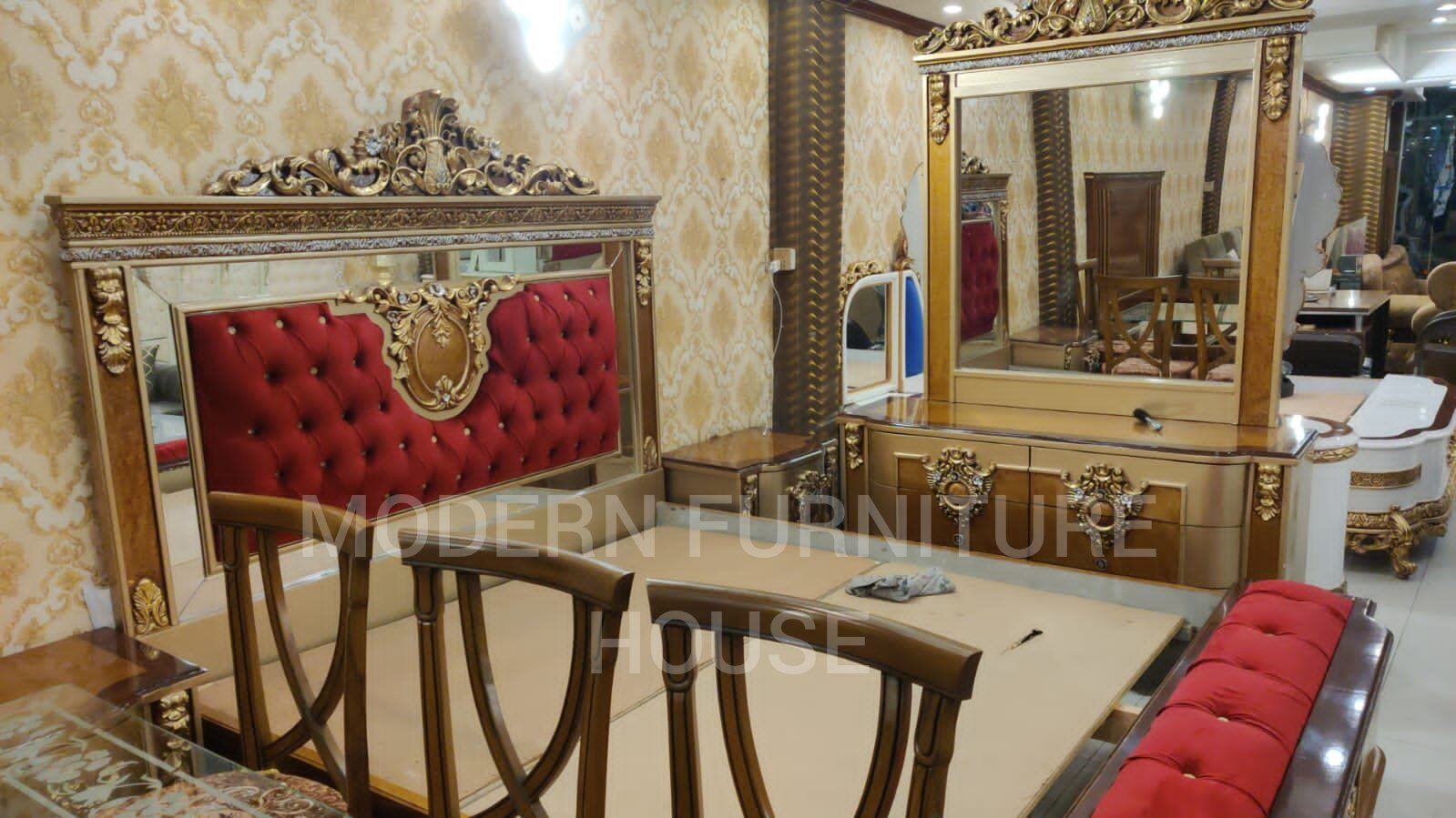 DOUBLE BED GOLDEN RED WITH COPPER DESIGN.