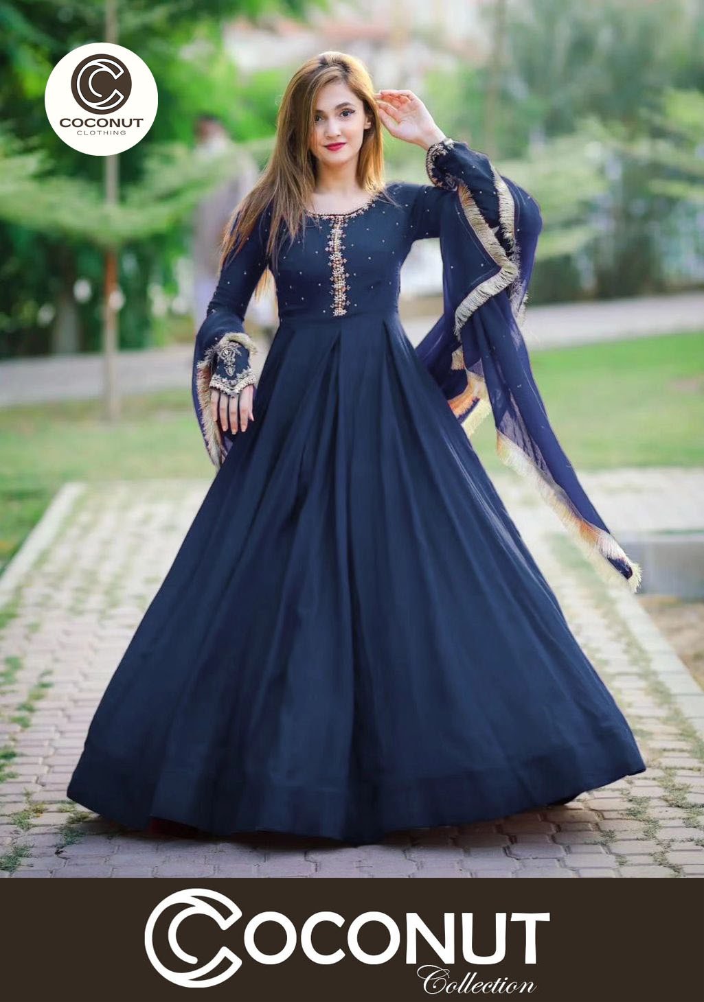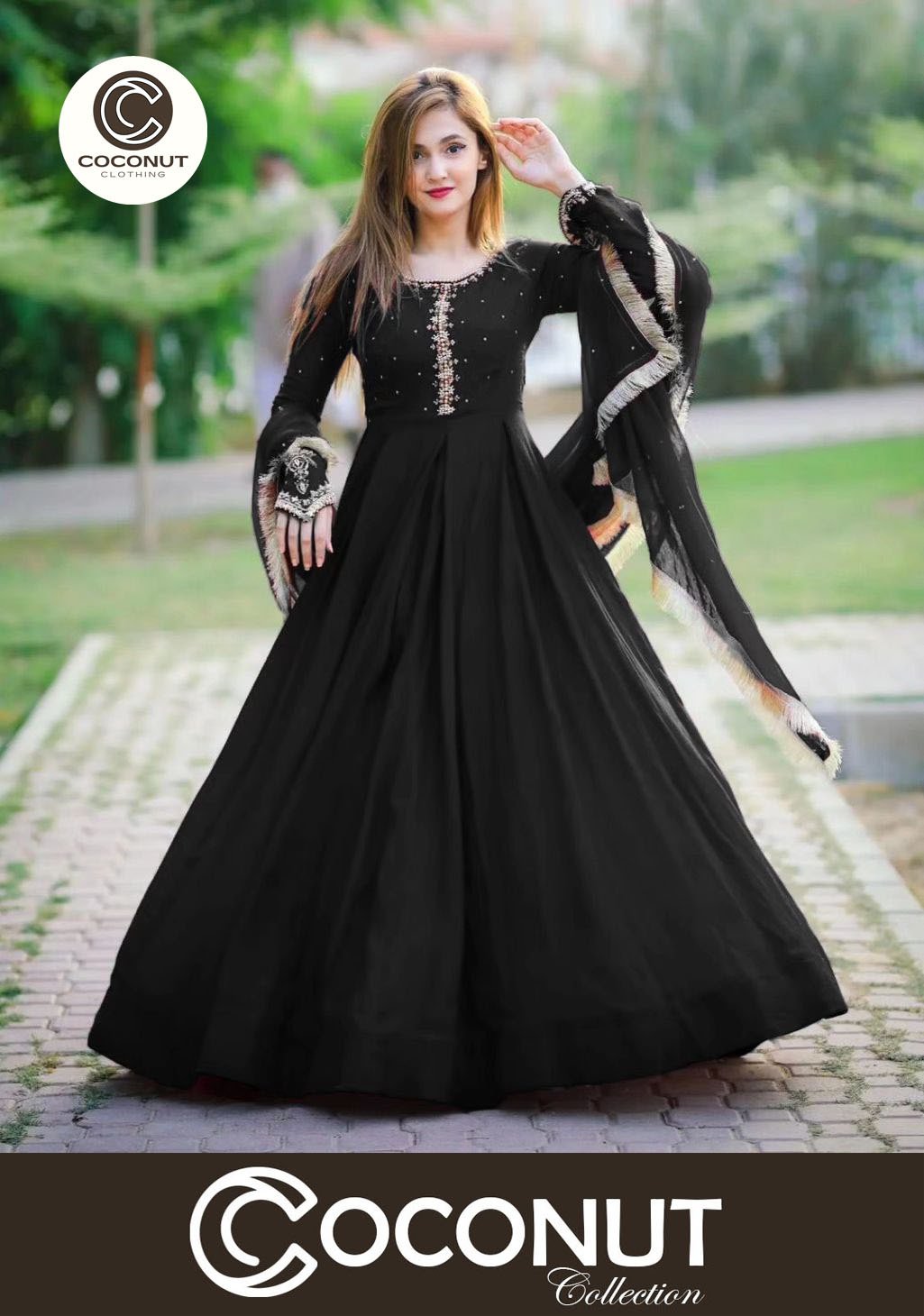 Embroidered with Pearls Attached Long Maxi With Lace Work
