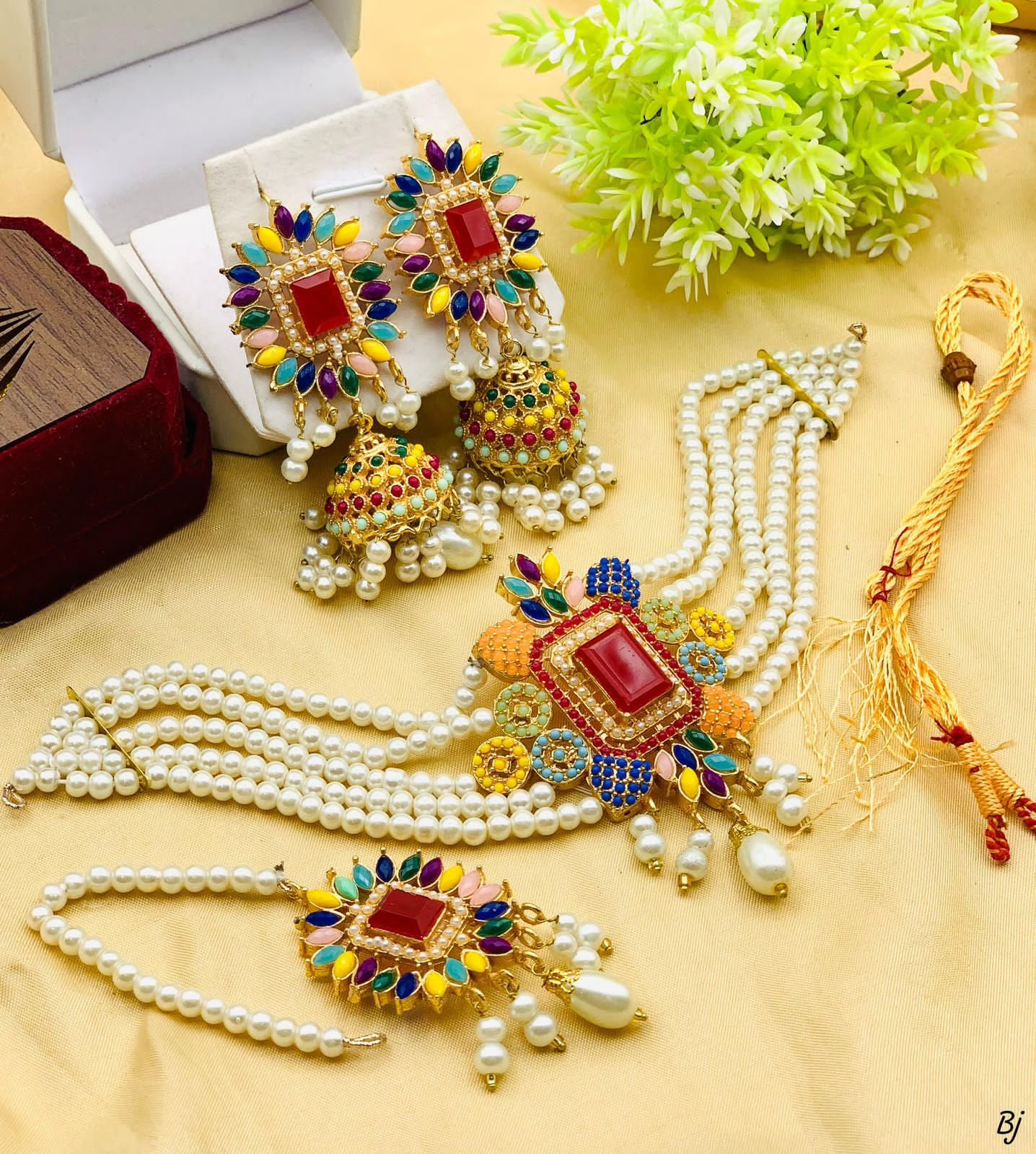 Fancy Beautiful NAURATAN RAJWARI Choker Set With Jhumki And Tika