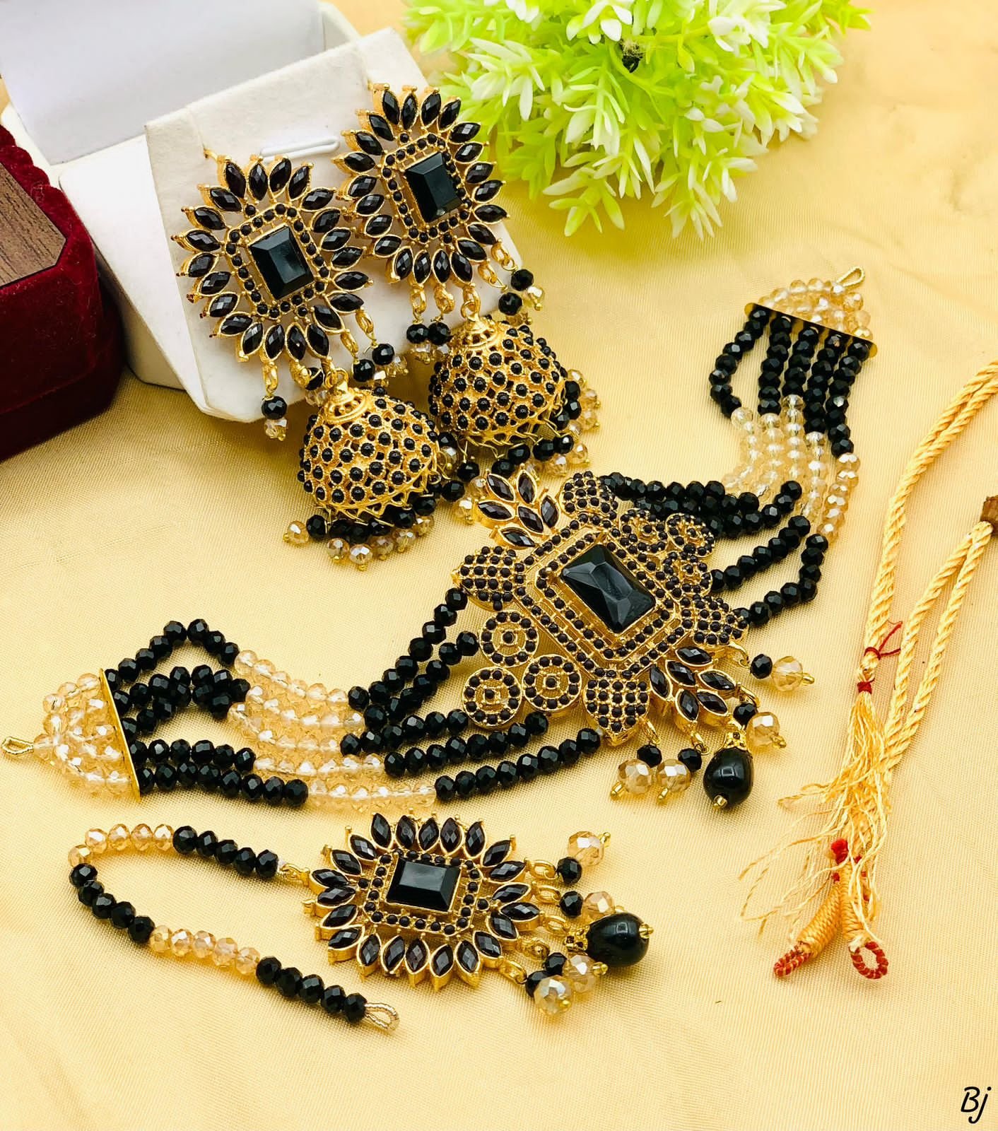 Fancy Beautiful NAURATAN RAJWARI Choker Set With Jhumki And Tika