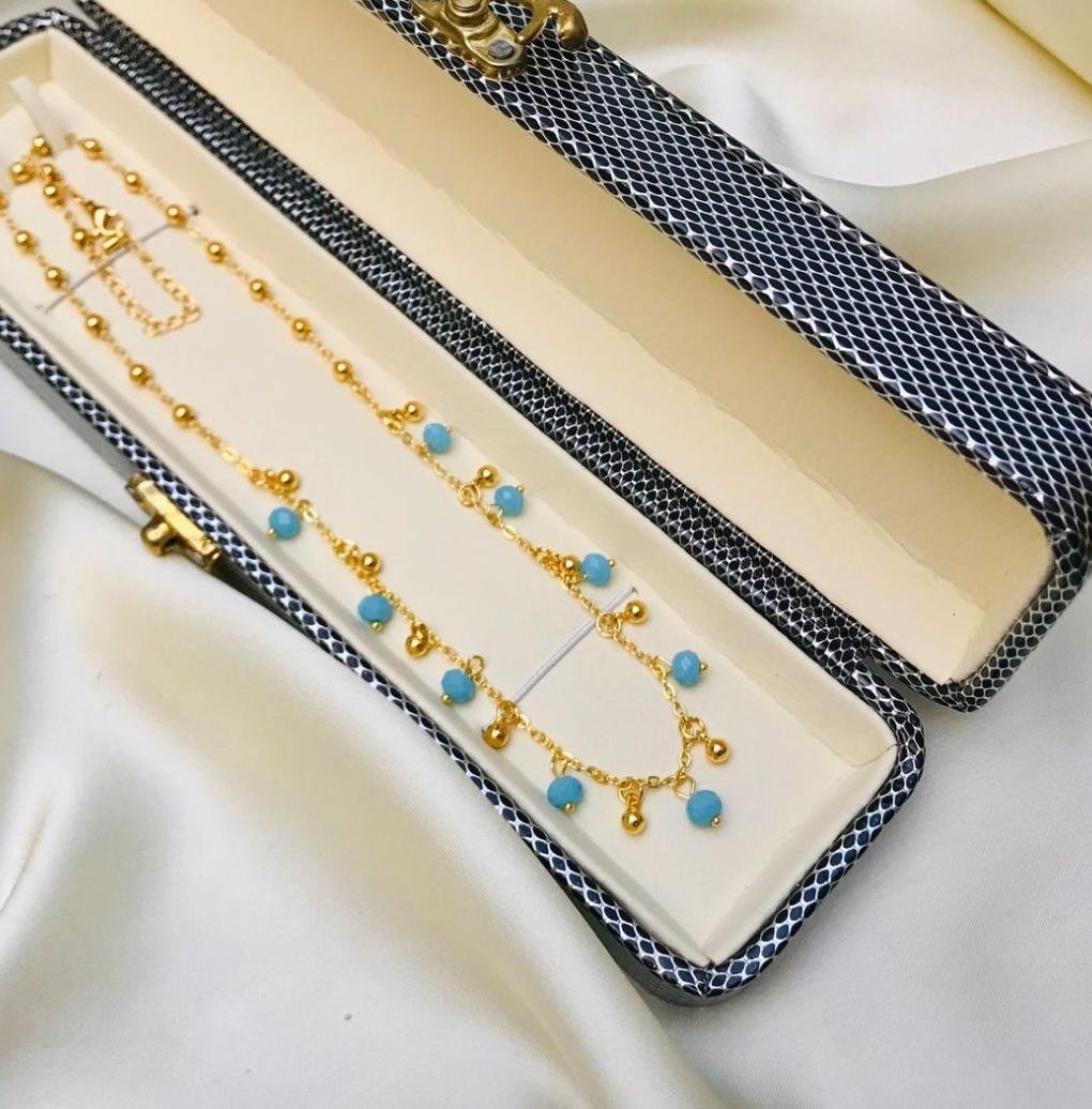 GOLDEN CHAIN WITH ICE BLUE PEARL